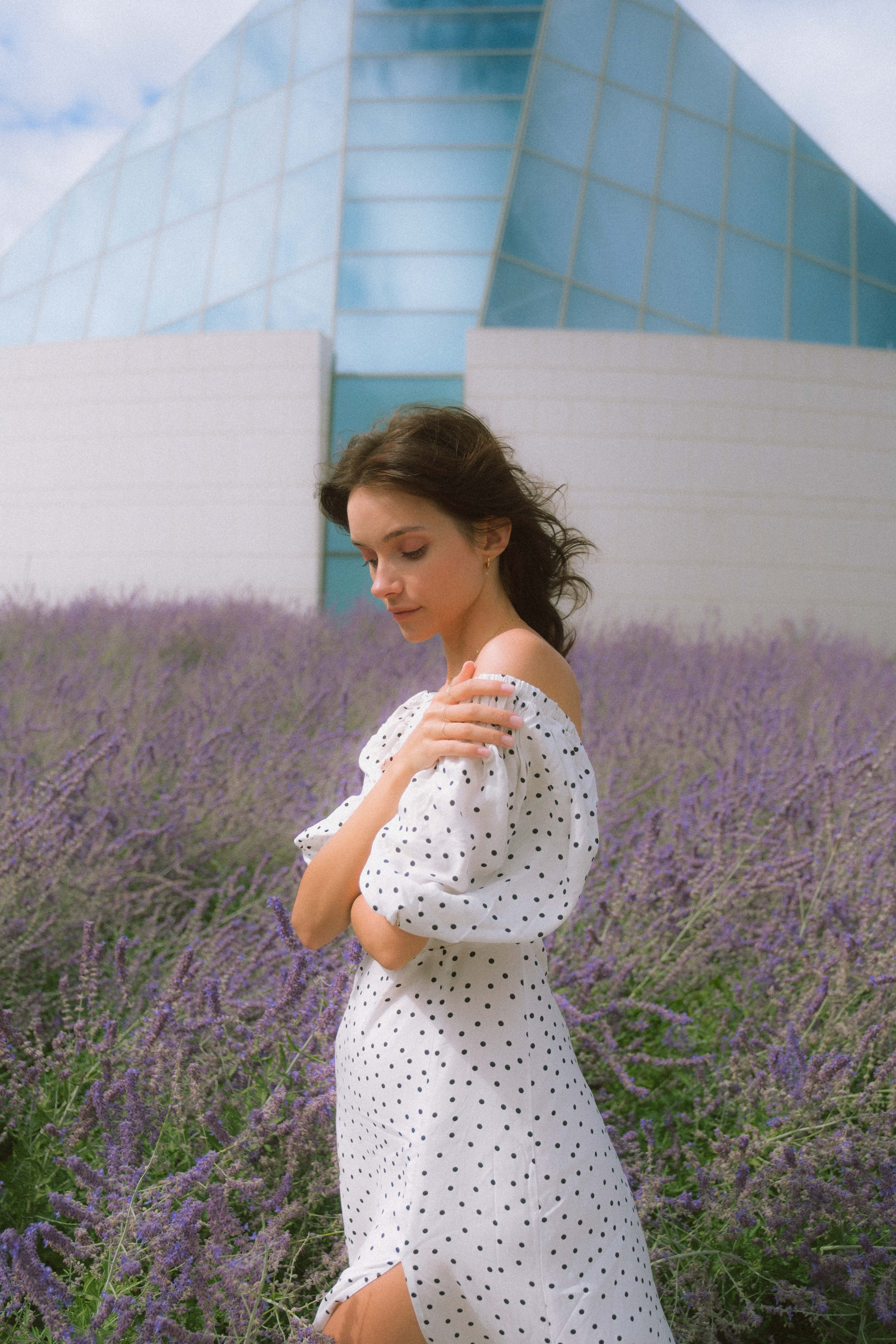 We started at the Aga Khan Museum grounds, where clean lines and architectural calm met gentle pockets of lavender. The tones were soft and dreamy, with a vintage palette that made every frame feel like a still from a quiet, sunlit film. The model’s presence blended beautifully with the space — graceful, effortless, and full of calm confidence.